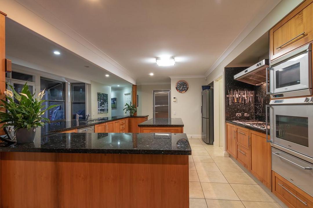 Downstairs is the phenomenal New Guinea Rosewood timber kitchen with black granite benchtops, both complemented by top of the range Gaggenau appliances. A walk in pantry and separate walk in cool room combine to make this a dream entertainment package. This zone opens onto the paved and landscaped outdoor entertaining area and salt water pool. Several living areas on this level, including a 120m2 family room with soaring 6m wood lined cathedral ceilings, a full size billiard room, separate formal lounge, and dining room. Other features include a sauna, huge laundry, another office, the list goes on.