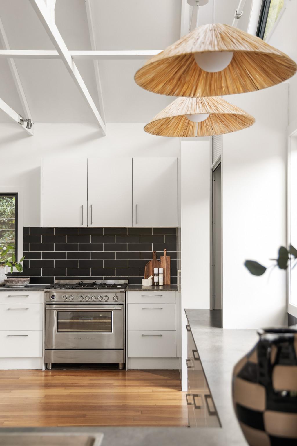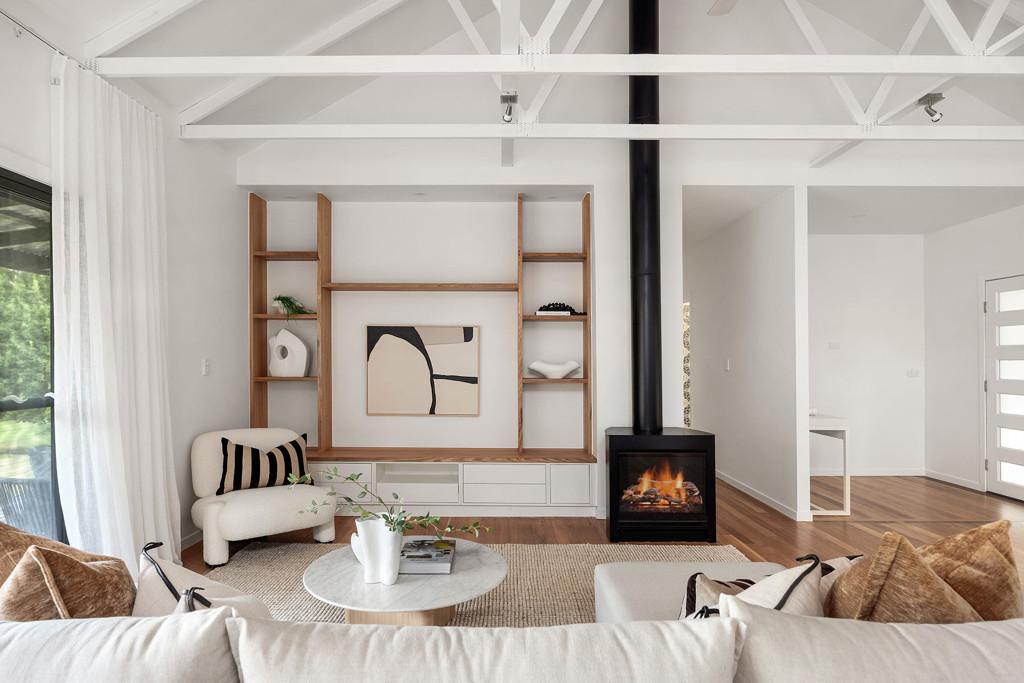 A sheltered courtyard with a tranquil Japanese Koi pond sets the tone, offering a quiet moment before stepping inside. The interior is warm, textural, and beautifully appointed. Exposed beams, high ceilings, and polished hardwood floors create an atmosphere of authenticity, while custom cabinetry in the lounge, crafted from reclaimed Victorian ash, adds a sense of artistry. The central living and dining space is framed by covered verandahs and expansive timber decks, creating effortless indoor-outdoor flow and capturing views across the stunning usable land from every angle. There are three bedrooms and two well-appointed bathrooms, all bathed in natural light and thoughtfully positioned to enjoy tranquil outlooks over the beautiful greenery that surrounds, creating a calm and restorative atmosphere throughout the home. The kitchen blends modern farmhouse elegance with practicality, featuring stone benchtops, quality appliances, including a 900mm stove with gas hob. It connects seamlessly to the vast entertaining deck, a space designed for long lunches, family gatherings, and quiet mornings overlooking the landscape.