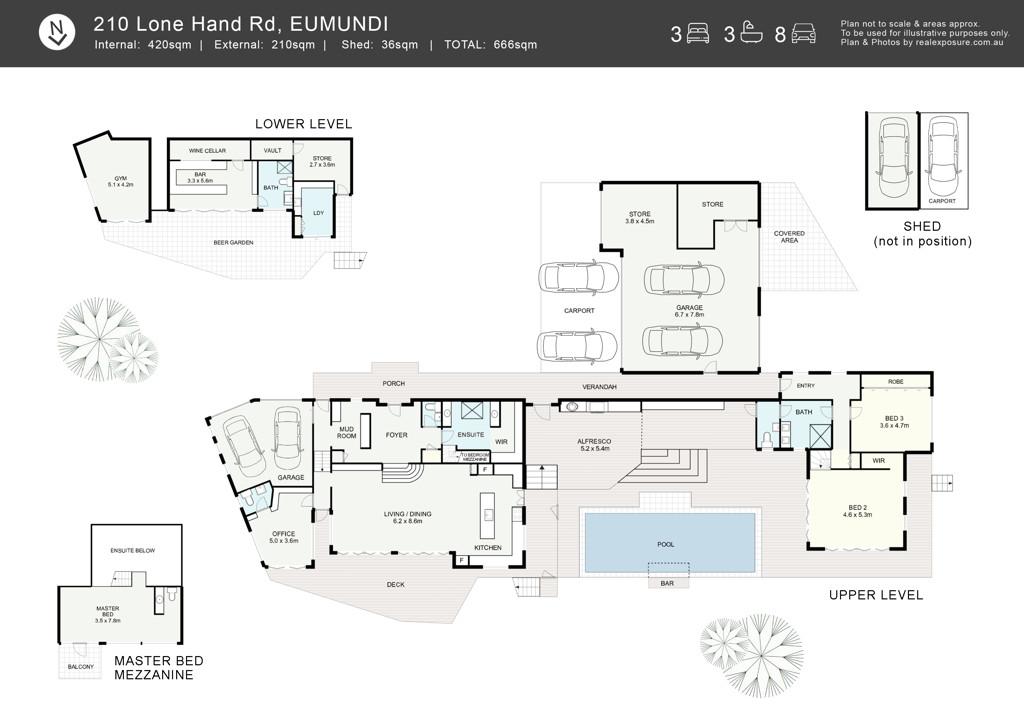 - Large high-clearance six car shed with additional storage, perfect for the caravan and boat