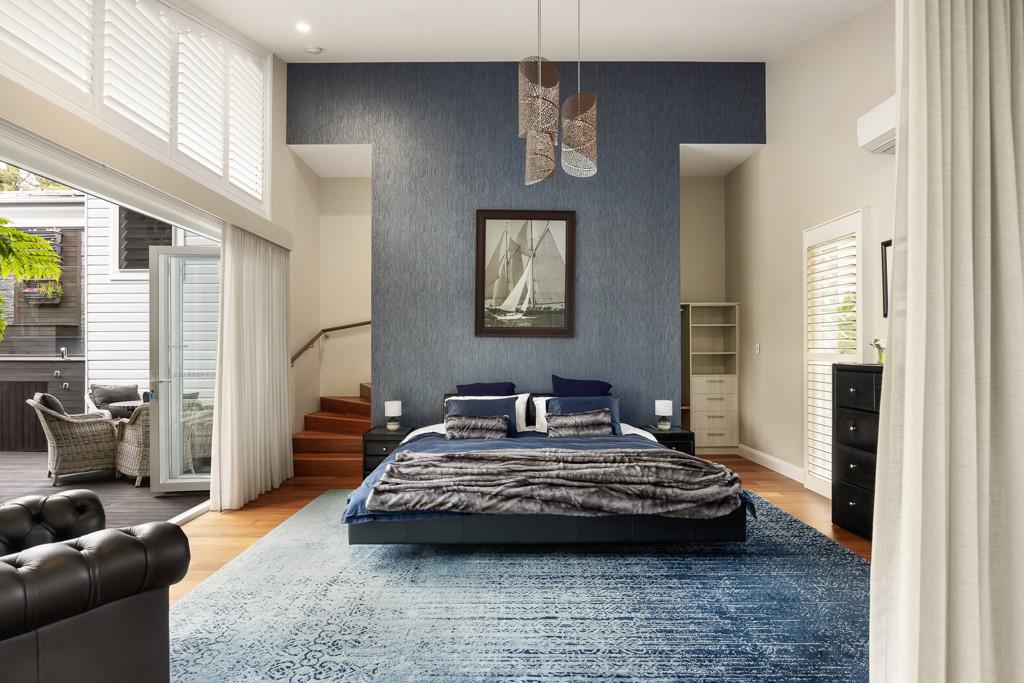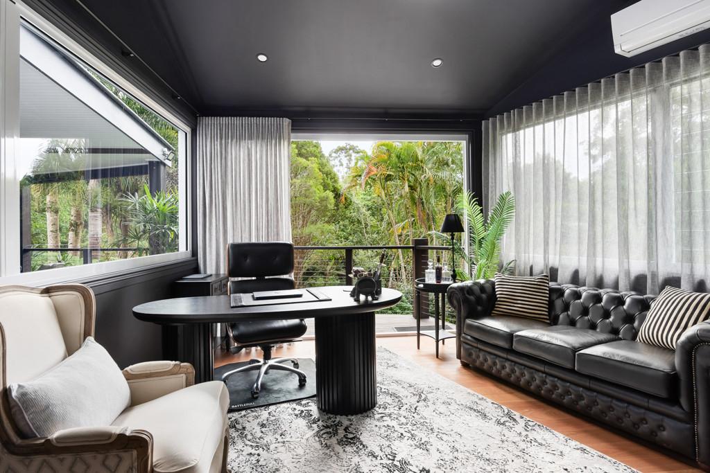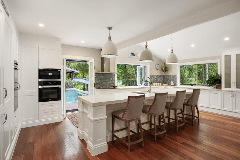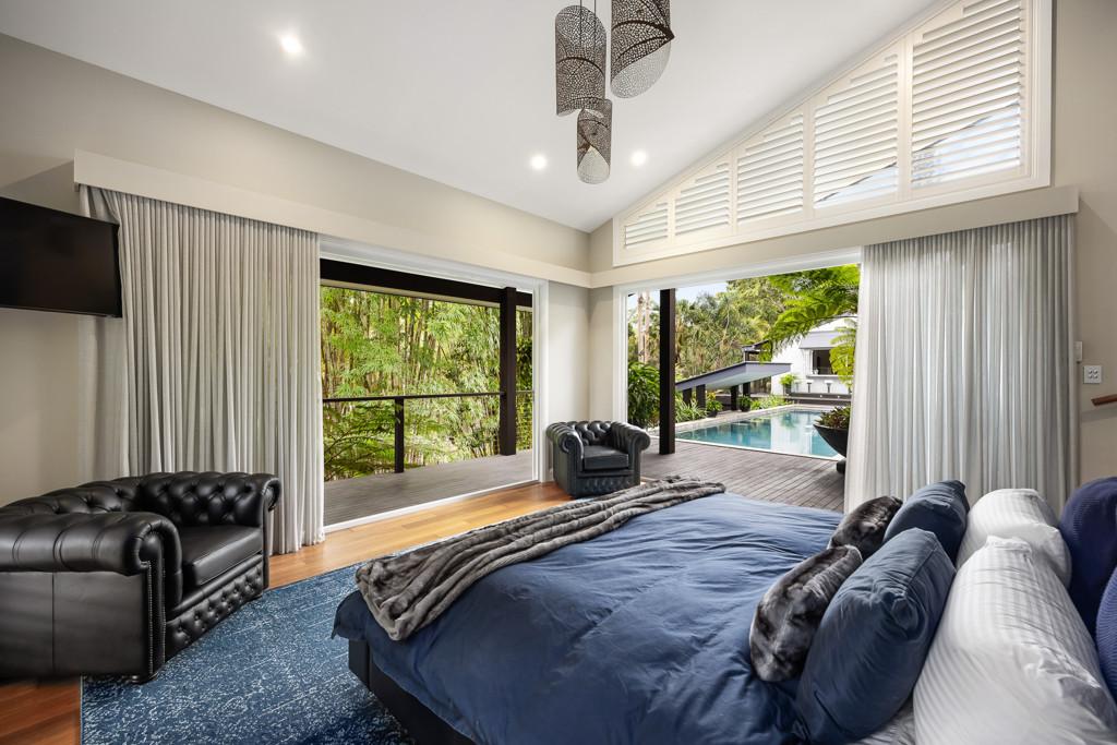 Accommodation is centred around a split-level master suite with a private deck overlooking Mt Cooroy. Multiple living zones provide flexibility, including a study, gym, wine bar and a cellar capable of holding 1,000 bottles.
