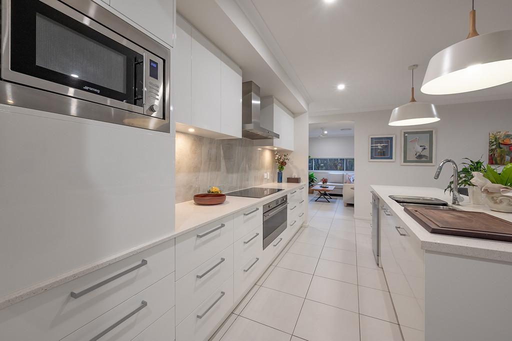 The heart of the home is the designer kitchen-an entertainer's dream-featuring stone benchtops, a walk-in pantry, and premium stainless-steel appliances. Overlooking multiple living zones, the kitchen is perfectly positioned to service the open-plan living and dining area, a separate media room, and a versatile office or second lounge. Sliding doors open to an expansive alfresco entertaining space, where you can unwind and soak in the peaceful backdrop.