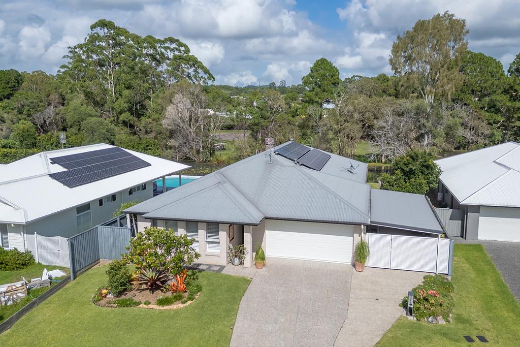 Nestled in a quiet cul-de-sac just moments from the heart of Cooroy, this stunning Brighton Homes residence offers the perfect blend of modern comfort and scenic serenity. This steel frame home built was only a few years ago and meticulously maintained, this home is a true sanctuary where style meets functionality. Set on a generous 623sqm block, the property feels even more expansive as it seamlessly blends with the lush surrounds of neighbouring acreage, offering tranquil views over a picturesque dam. Inside, high ceilings, plantation shutters, and ducted air-conditioning create an inviting and luxurious atmosphere, while a thoughtfully designed floor plan ensures space for every member of the family.
