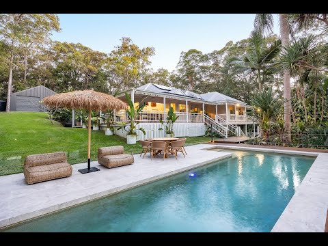 Accessed by a picturesque tree-lined drive, the home is positioned to capitalise on the elevated position and outlook over natural bush. Modern Queenslander in style, it features timber floors, soaring raked ceilings, and a wide, covered deck wrapping around all four sides. Year-round comfort is assured, with ceiling fans, ducted air-conditioning, gas fireplace, and extensive use of glass to capture the natural light and frame the green views from every room.