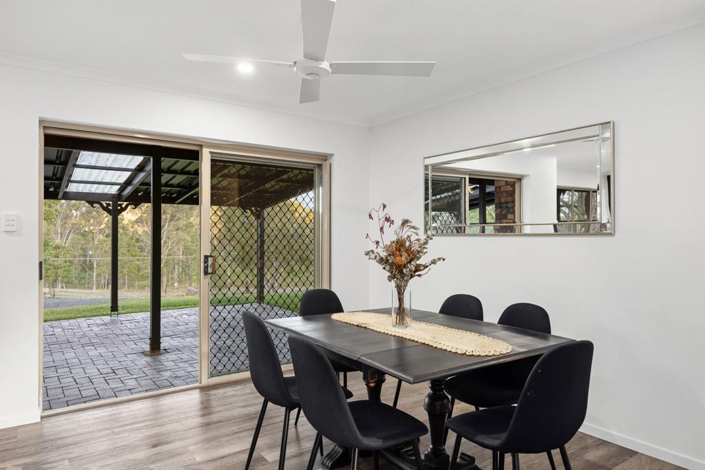 Set on a corner block country road, the elevated, fully fenced five-acre block has a sweeping east-to-west aspect, taking in views across lush rolling hills to Mount Eerwah and Cooroy Mountain. With two quality double brick homes onsite, both of which capitalise on the exquisite outlook, you could live in one and rent the other, or easily accommodate guests or extended family.