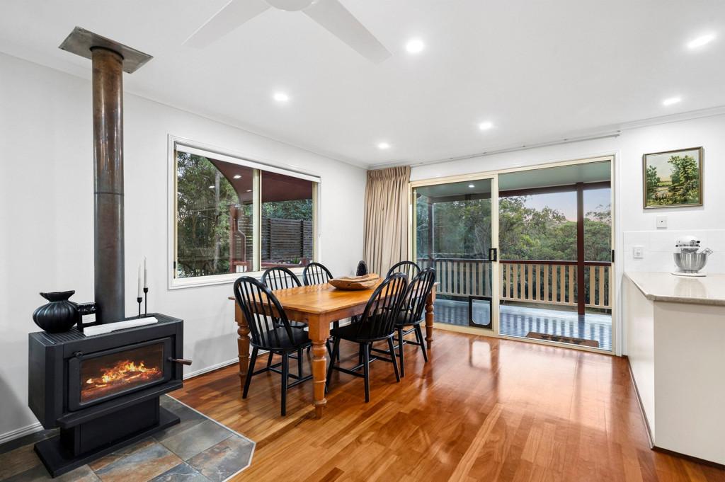 The light-filled open plan living and dining area flow effortlessly onto an expansive east-facing covered deck that runs the full length of the home, capturing sweeping views of your lush, usable acres with not a neighbour in sight. The country-style kitchen shares the same outlook, making every meal preparation a moment to enjoy. Comfort is assured year-round with air-conditioning and a cosy fireplace.