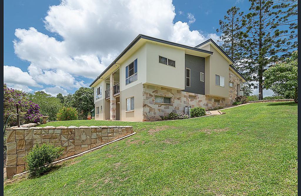 - Elevated sandstone home on 3,780sqm in Noosa Hinterland with northerly aspect