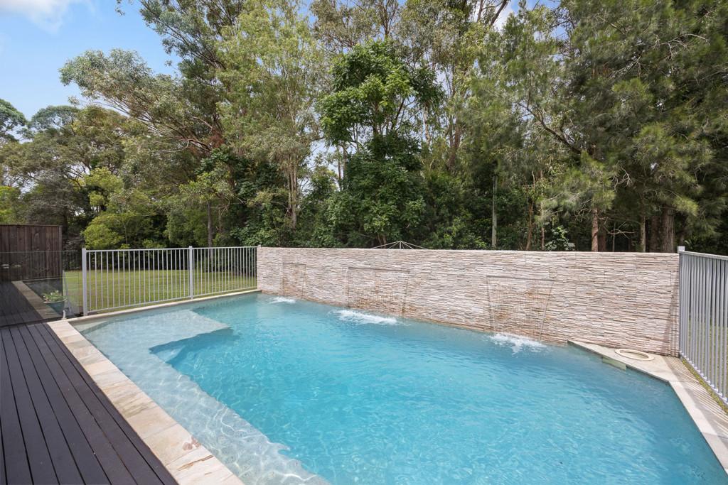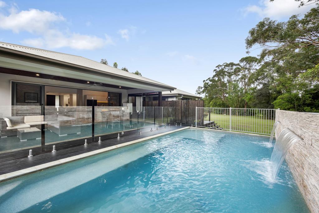 A covered entry porch leads into the open-plan living zone, where entertaining will be a breeze from the sleek modern kitchen with its Bosch 6-burner gas cooktop and electric oven, soft close drawers, 40 mm stone benchtops, generous pantry and island bench. Massive glass doors connect the interior living space to a huge entertaining deck with covered alfresco dining area, all overlooking the saltwater pool with remote control water feature. The main bedroom suite features a walk-in robe, ensuite with spa bath, dual benchtop vanity basins and separate toilet, and direct pool access. Plus, there's three more bedrooms with built-in robes, a double lock-up garage with remote door, sink, floor-to-ceiling shelving and room for a washing machine.