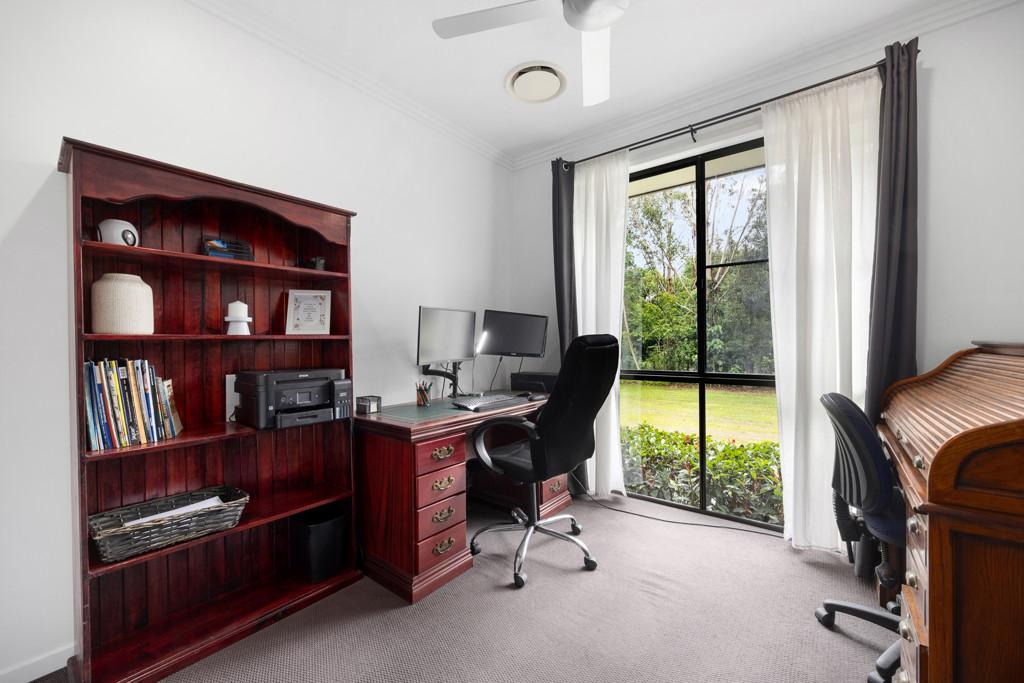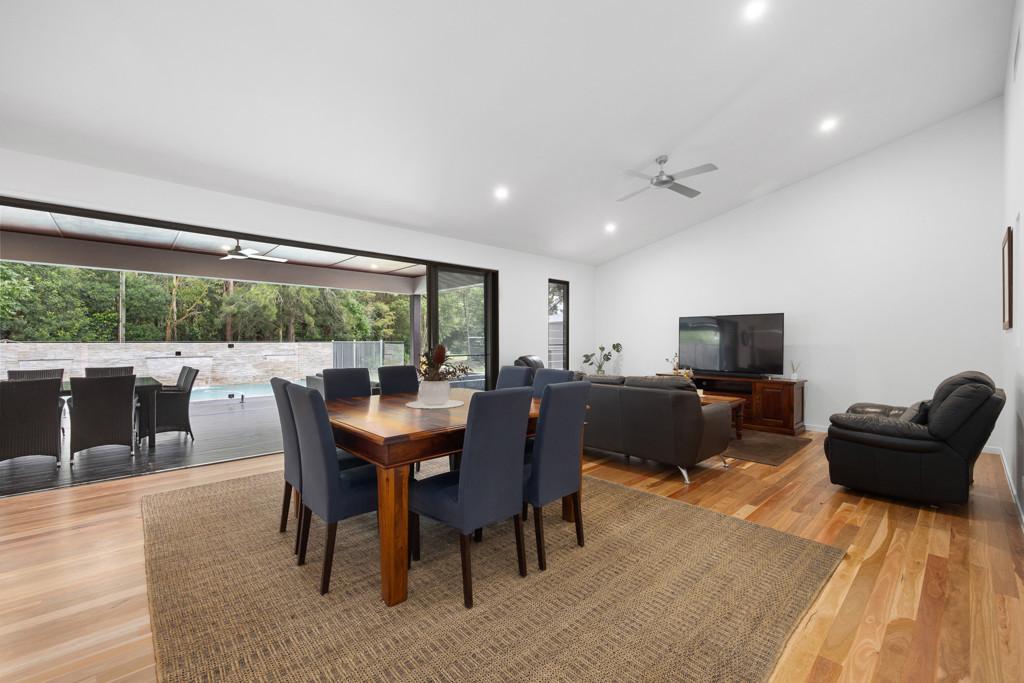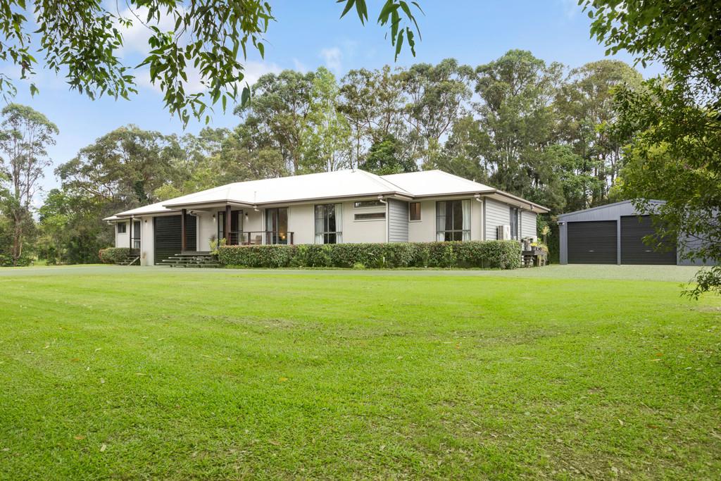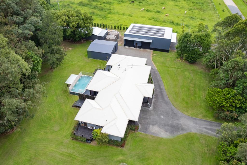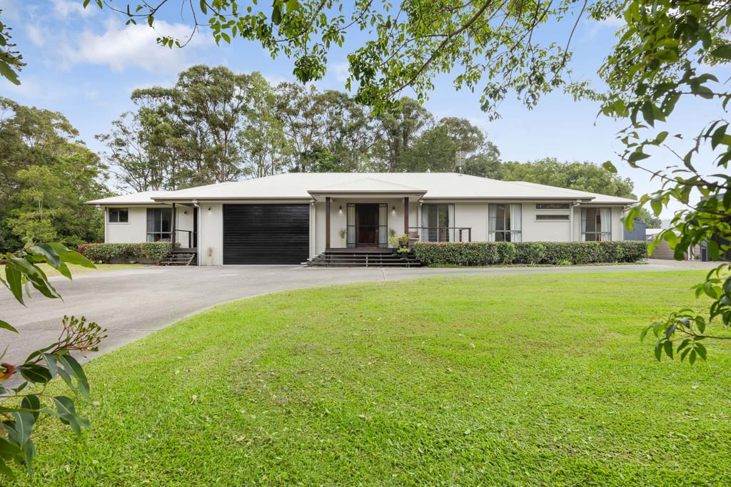 Whether you're seeking to run a home-based business, accommodate extended family, or enjoy peace and privacy with plenty of space (and no neighbours), this stunning property fits the bill. With 5.6 level acres, dual living and abundant infrastructure, the options here are near limitless. A wide coloured concrete driveway leads to the impressive main residence, which embodies understated elegance. Your first impressions of space and contemporary style are carried throughout, with soaring raked ceilings, genuine Australian hardwood floors in the living areas and main bedroom, ducted air-conditioning, fans, and high windows and doors to capture the lush green outlook from every room.