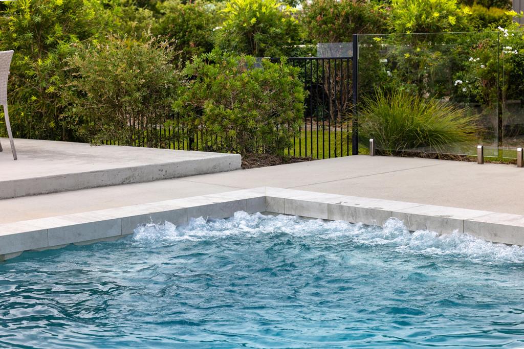 - Magnesium swimming pool with shallow entry and colour-changing LED lighting